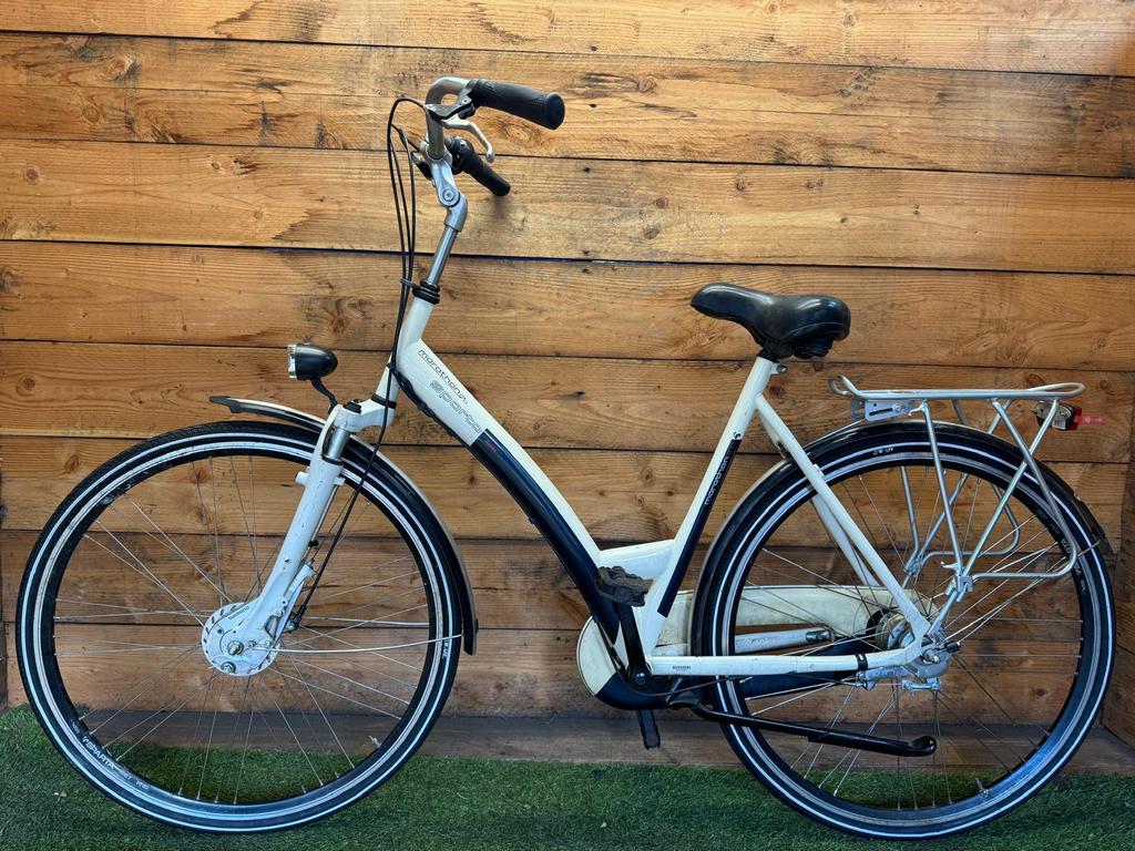 Hoewel de fiets gebruikssporen heeft, is deze technisch volledig gereviseerd en zijn versleten onderdelen vervangen door nieuwe