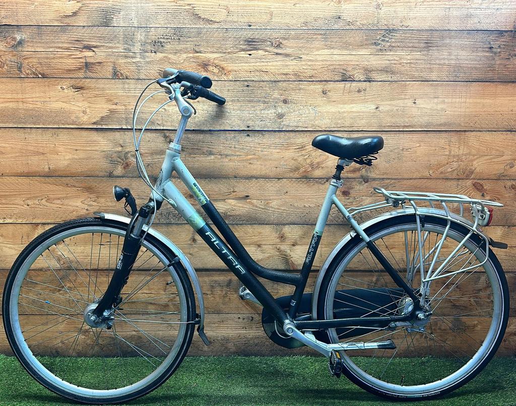 Hoewel de fiets gebruikssporen heeft, is deze technisch volledig gereviseerd en zijn versleten onderdelen vervangen door nieuwe