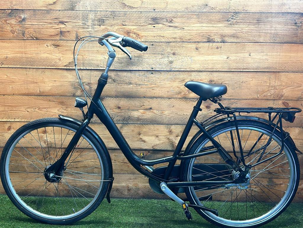 Hoewel de fiets gebruikssporen heeft, is deze technisch volledig gereviseerd en zijn versleten onderdelen vervangen door nieuwe