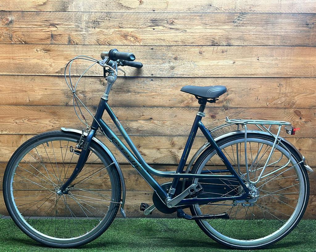 Hoewel de fiets gebruikssporen heeft, is deze technisch volledig gereviseerd en zijn versleten onderdelen vervangen door nieuwe