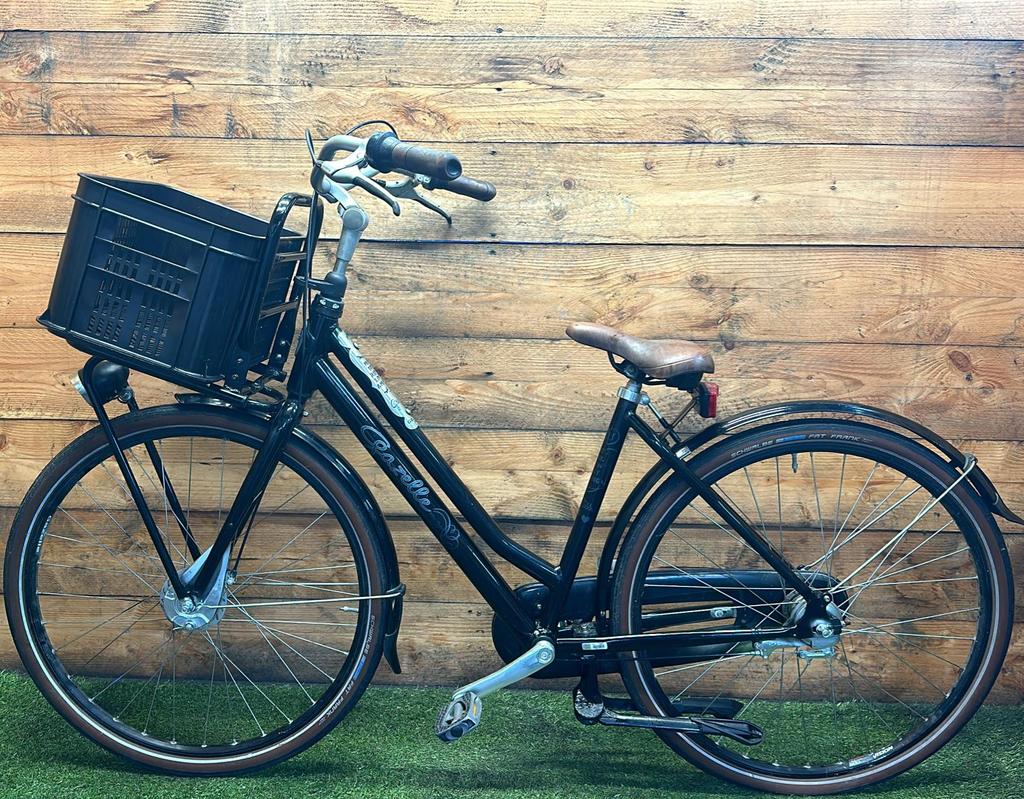 Hoewel de fiets gebruikssporen heeft, is deze technisch volledig gereviseerd en zijn versleten onderdelen vervangen door nieuwe