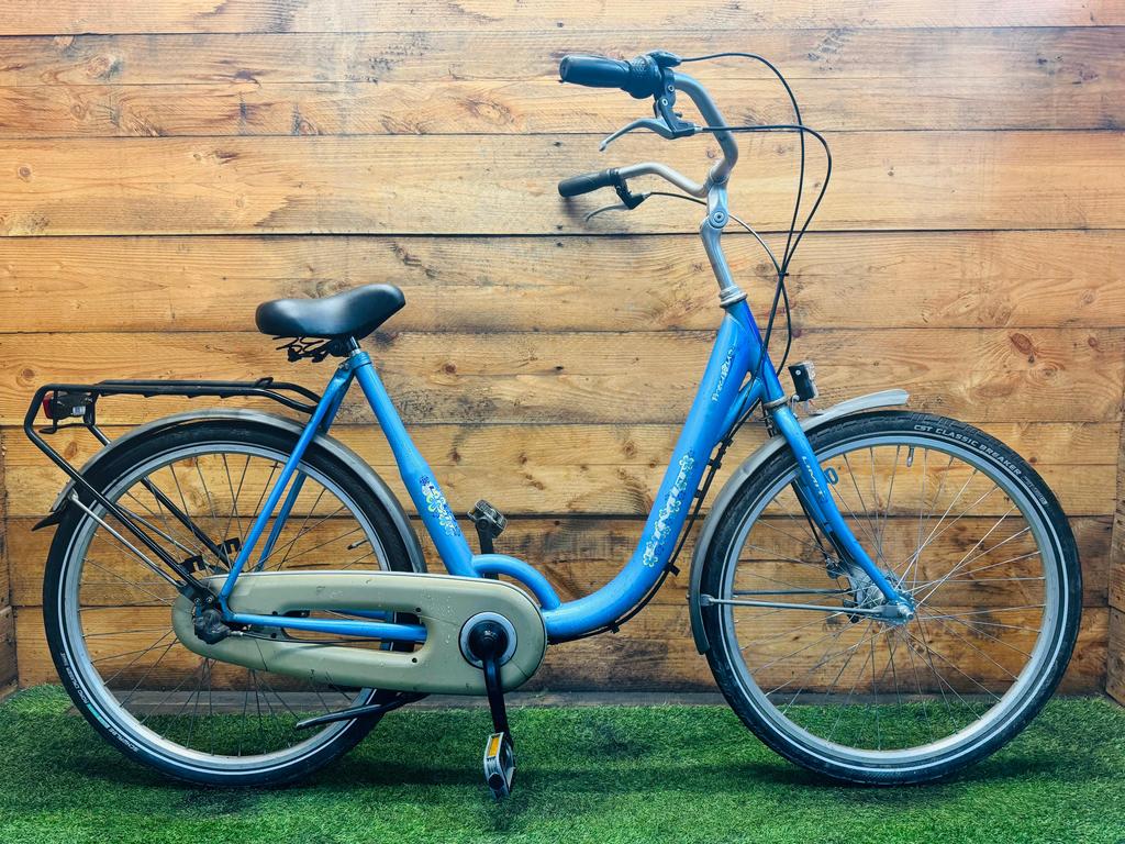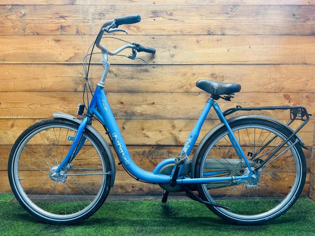 Hoewel de fiets gebruikssporen heeft, is deze technisch volledig gereviseerd en zijn versleten onderdelen vervangen door nieuwe