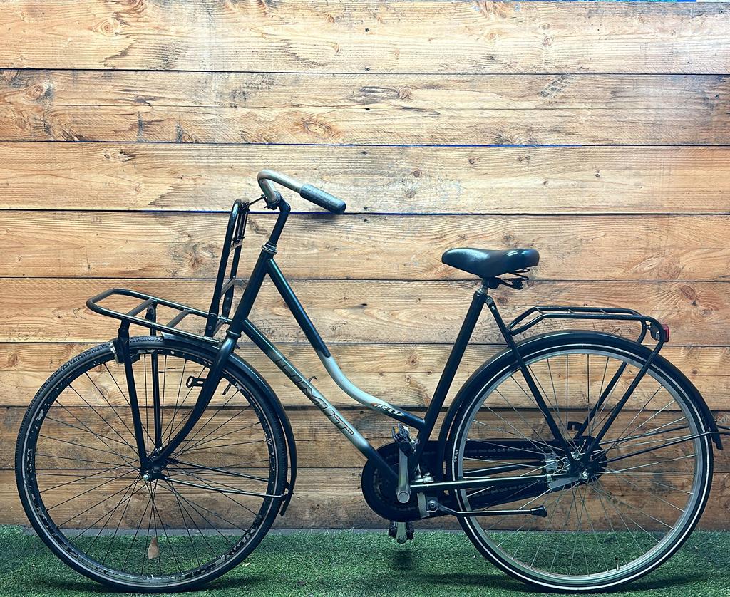 Hoewel de fiets gebruikssporen heeft, is deze technisch volledig gereviseerd en zijn versleten onderdelen vervangen door nieuwe