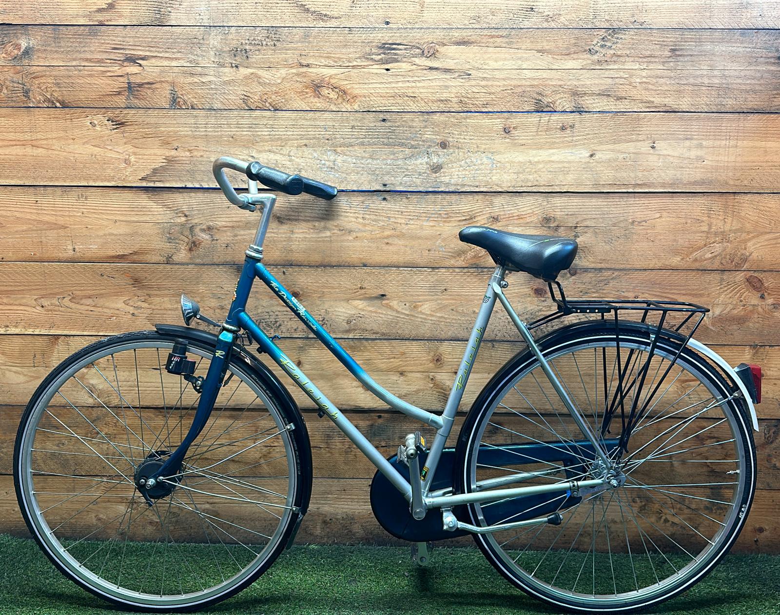 Hoewel de fiets gebruikssporen heeft, is deze technisch volledig gereviseerd en zijn versleten onderdelen vervangen door nieuwe