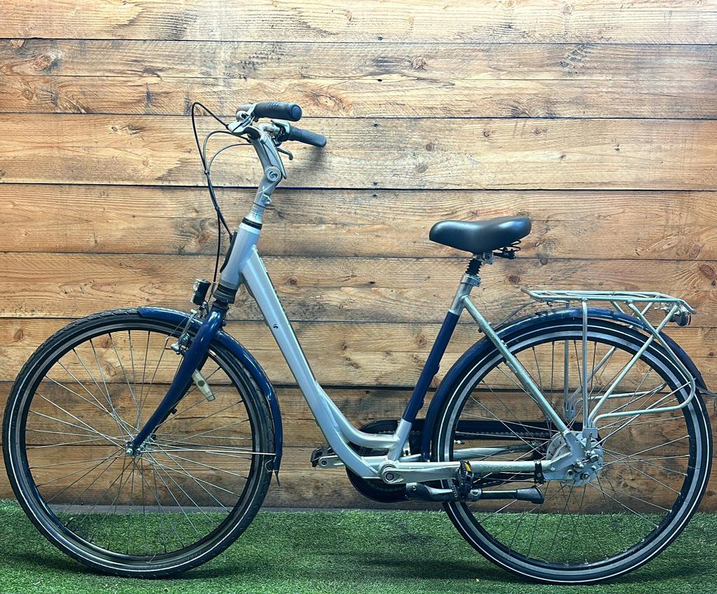 Hoewel de fiets gebruikssporen heeft, is deze technisch volledig gereviseerd en zijn versleten onderdelen vervangen door nieuwe